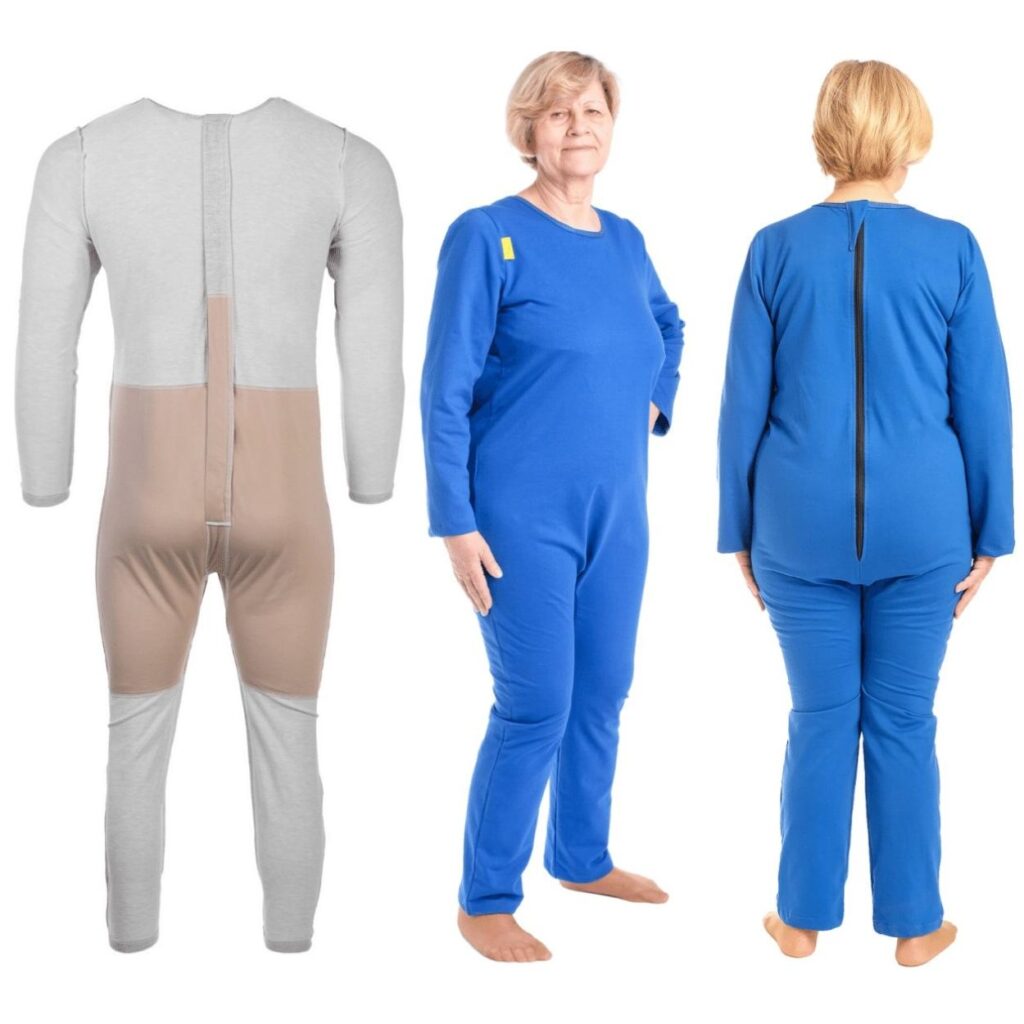 Bodysuits und Overalls wurden hauptsächlich für Menschen – Patienten entwickelt, die dazu neigen, sich selbstständig auszuziehen und ihre Windeln auszuziehen.